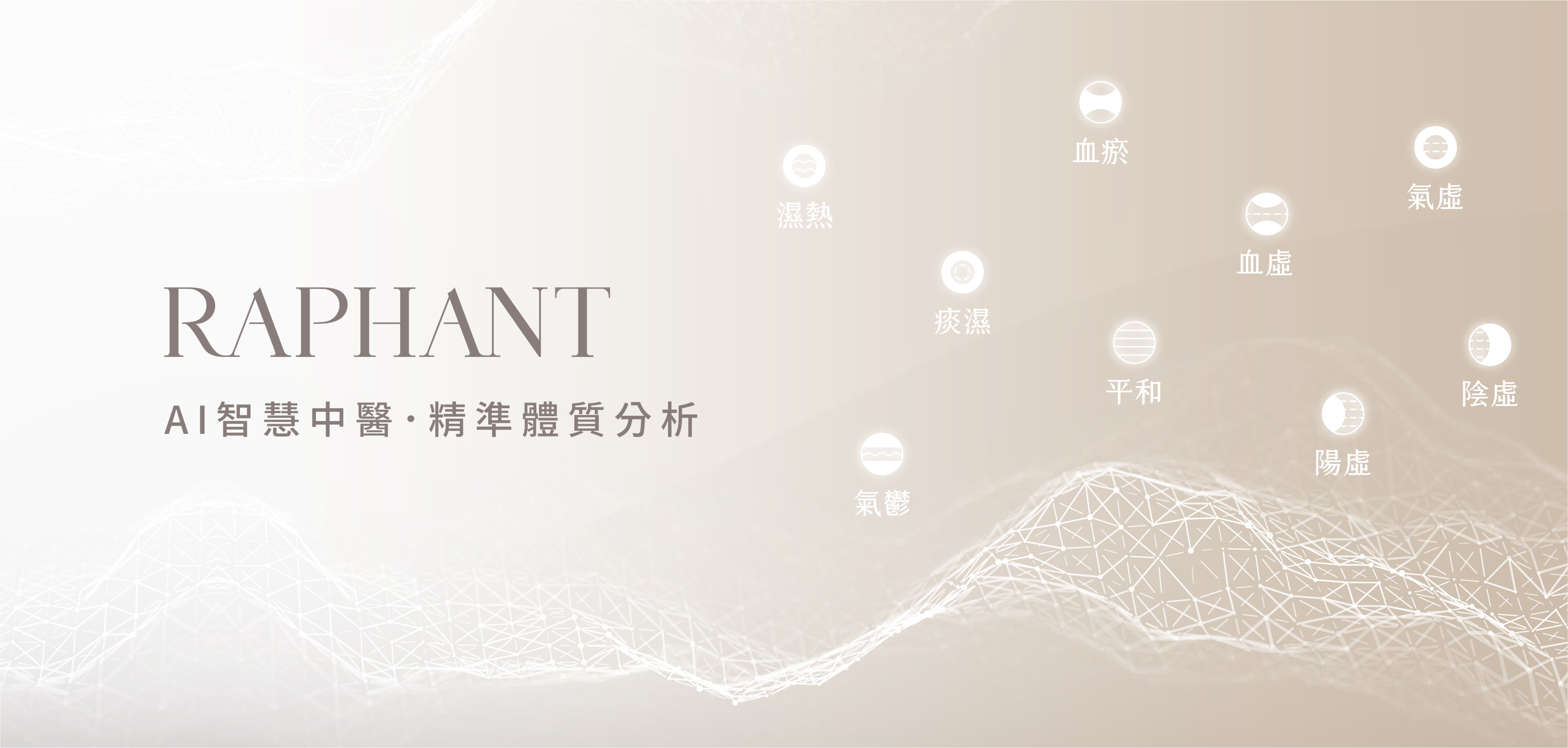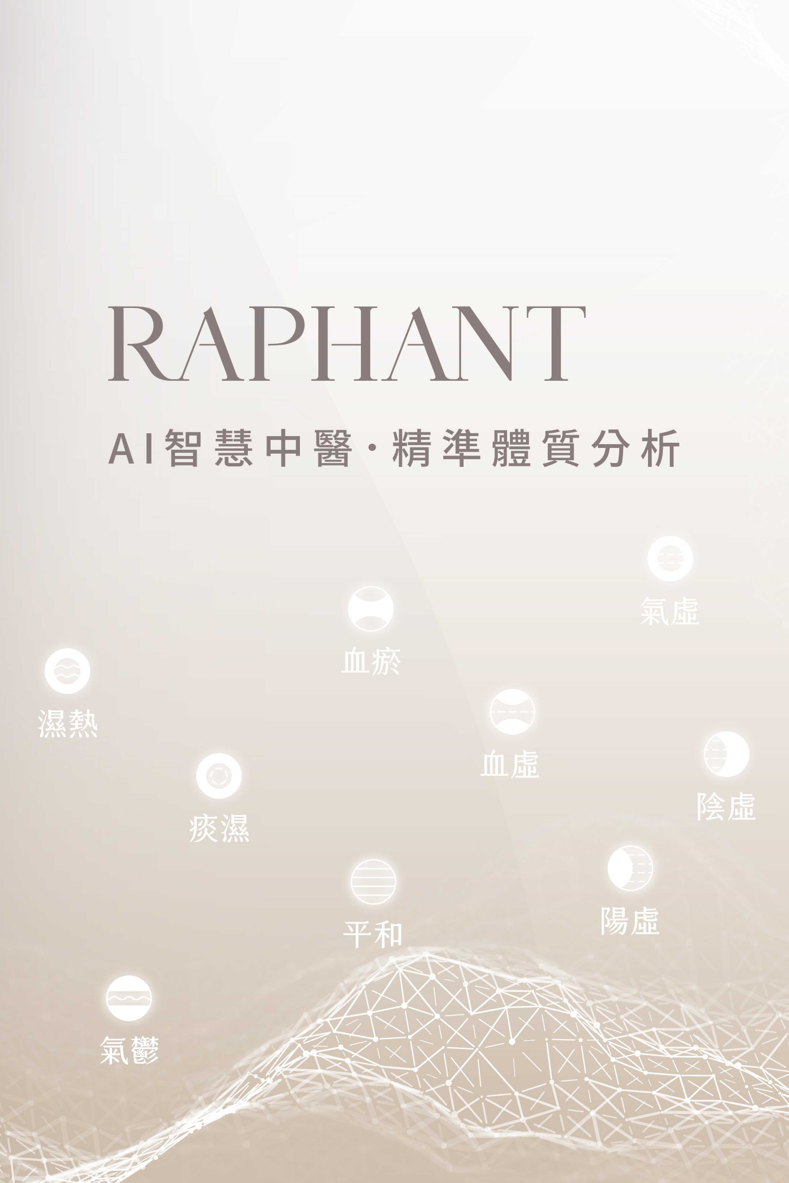體質是變動的,生活中的方方面面,不同體質就 有不同需求和對應方式,於是知道自己現處何種 體質很重要,因此RAP H ANT投入Al建構了科技 中醫,透過簡單的線上分析,就可以知道自己是 什麼體質。